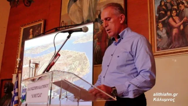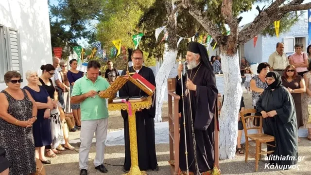 Καλωσόρισε όλους τους επισκέπτες που βρίσκονται στην Λέρο, το νησί της Παναγίας του Κάστρου, το νησί της θεάς Αρτέμιδος, όπως είπε, ένα νησί με μεγάλη ιστορία, πολύπαθο, αλλά μαγευτικό. Ένα νησί που διακρίνει τους κατοίκους του η πίστη στον Θεό, αλλά η αγάπη και ο σεβασμός στον συνάνθρωπό τους.