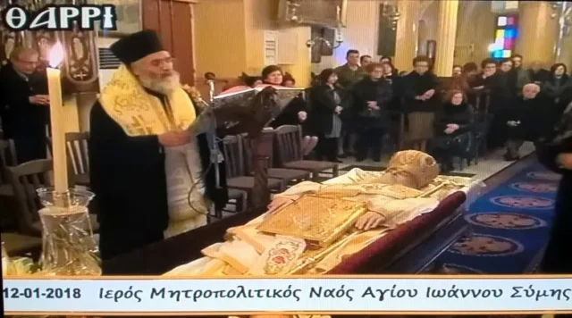Η Εξόδιος Ακολουθία θα τελεσθεί την Παρασκευή (12/1) στις 10.30 στον Μητροπολιτικό ιερό Ναό Αγίου Ιωάννου Σύμης και θα ακολουθήσει η ταφή στην ιερά Μονή Πανορμίτου Σύμης.