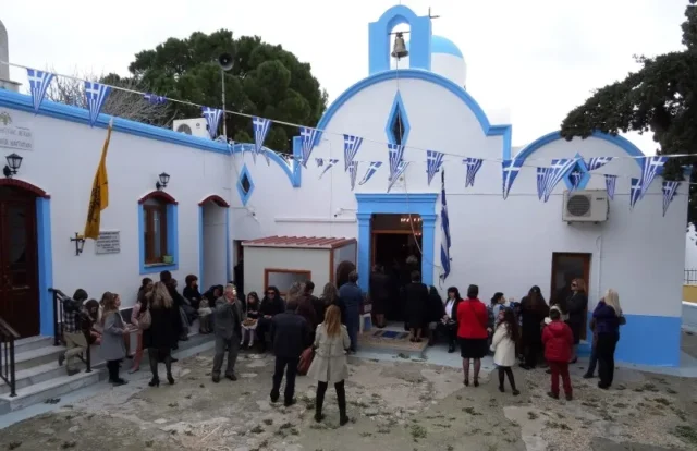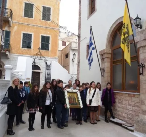 Το πρωί του Σαββάτου 30 Ιανουαρίου, τελέσθηκε Αρχιερατική Θεία Λειτουργία, παρουσία του αντιδημάρχου κ.Ι.Κωνσταντινίδη, μελών του Δημοτικού Συμβουλίου, εκπροσώπων των στρατιωτικών Αρχών και Σωμάτων Ασφαλείας, Συλλόγων και Φορέων, αντιπροσωπειών των σχολείων με τις σημαίες τους, εκπαιδευτικών της Νήσου, γονέων και κηδεμόνων των μαθητών και πλήθους πιστών.