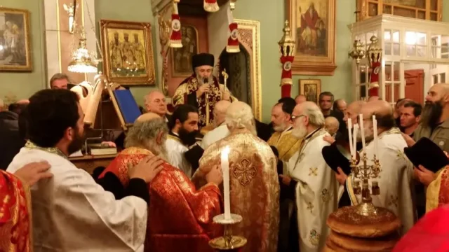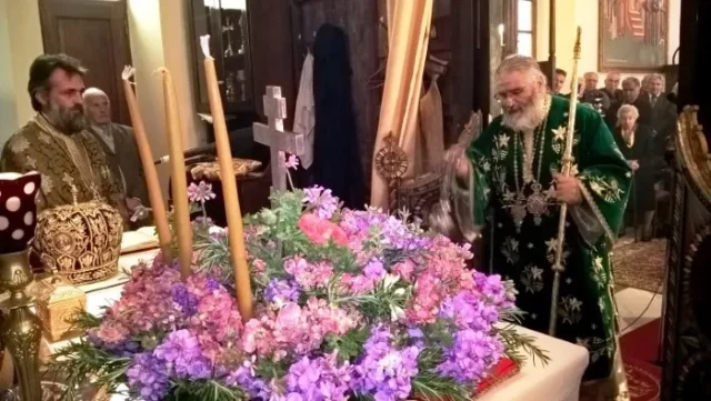Kατά τήν διάρκεια της ακολουθίας έκανε εξομολόγο τον εφημέριο του Ι.Ναού π.Χαράλαμπο Λεβεντάκη.