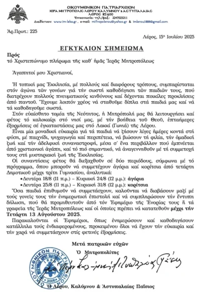 ΠΑΤΡΙΑΡΧΙΚΟ ΜΗΝΥΜΑ ΕΠΙ ΤΗ ΑΡΧΗ ΤΗΣ ΙΝΔΙΚΤΟΥ 2025