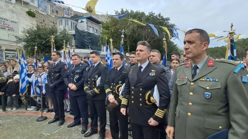 Από τις Ένοπλες Δυνάμεις, ο ανώτερος Διοικητής Καλύμνου και Διοικητής του 5/42 ΣΕ Συνταγματάρχης Κωνσταντίνος Τσίρος, με επιτελείς, ο Διοικητής του Ναυτικού Σταθμού Κω, Πλοίαρχος ΠΝ Ανάργυρος Κούνουπας, ο Κυβερνήτης της Κανονιοφόρου (Κ/Φ) «Μαχητής», Πλωτάρχης ΠΝ Γεώργιος Μιχαήλ Μανίκας με στελέχη και ναύτες από το πλήρωμα. Από τα Σώματα Ασφαλείας: από το ΛΣ-ΕΛ.ΑΚΤ ο Λιμενάρχης Καλύμνου Ανθυποπλοίαρχος ΛΣ Ιωάννης Τύρελης, ο Διοικητής της ΑΕΝ Καλύμνου Πλωτάρχης ΛΣ Γεώργιος Γαλουζής, ο Διοικητής του Α.Τ. Καλύμνου Αστυνόμος Α΄ Ευάγγελος Καραθάνος, ο Διοικητής του Εθελοντικού ΠΣ Σταθμού Καλύμνου, Ανθυποπυραγός ΠΣ Θεόδωρος Κυτίδης. Συγκινητική τέλος ήταν η συμμετοχή αντιπροσωπειών μαθητριών, μαθητών και εκπαιδευτικών από τα σχολεία της Καλύμνου με τις σημαίες των Σχολείων τους.