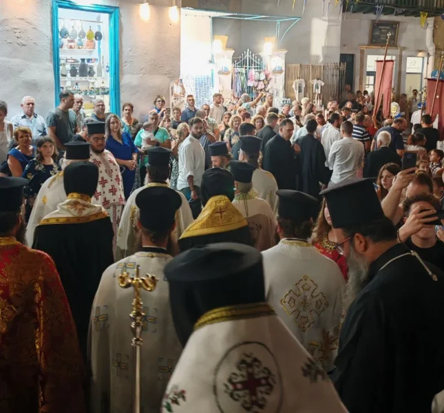 Το εσπέρας της Τετάρτης 16 Ιουλίου 2025, στις 7:30΄ το απόγευμα, ετελέσθη Μέγας Πανηγυρικός Αρχιερατικός Εσπερινός μετ’ Αρτοκλασίας, χοροστατούντος του Σεβασμιωτάτου Μητροπολίτου Προικοννήσου κ. Ιωσήφ, συμπροσευχομένων του Σεβασμιωτάτου Μητροπολίτου ημών κ. Παϊσίου, του Θεοφιλεστάτου Επισκόπου Στρατονικείας κ. Στεφάνου, του Ιερού Κλήρου της Νήσου, αλλά και παρεπιδημούντων ιερέων. Στο Ιερό Αναλόγιο έψαλλε πολυμελής χορωδία καλλίφωνων ιεροψαλτών υπό την διεύθυνση του Ραφαήλ Χατζηλάρη.