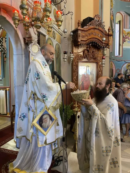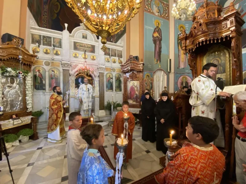 Το πρωί της Πέμπτης 17 Ιουλίου 2025, ετελέσθη ο Όρθρος και η πανηγυρική Πολυαρχιερατική Θεία Λειτουργία, προεξάρχοντος του Σεβασμιωτάτου Μητροπολίτου Προικοννήσου κ. Ιωσήφ, συλλειτουργούντων του Σεβασμιωτάτου Μητροπολίτου ημών κ. Παϊσίου, του Θεοφιλεστάτου Επισκόπου Τυάνων κ. Φανουρίου (βοηθού Επισκόπου του Σεβ. Μητροπολίτου Ελβετίας κ. Μαξίμου), του Θεοφιλεστάτου Επισκόπου Στρατονικείας κ. Στεφάνου, του Ιερού Κλήρου της Νήσου, αλλά και παρεπιδημούντων ιερέων. Στα Ιερά Αναλόγια έψαλλαν πολυμελή χορωδίες καλλίφωνων ιεροψαλτών υπό την διεύθυνση του Ραφαήλ Χατζηλάρη και Αναστασίου Χατζηλάρη.