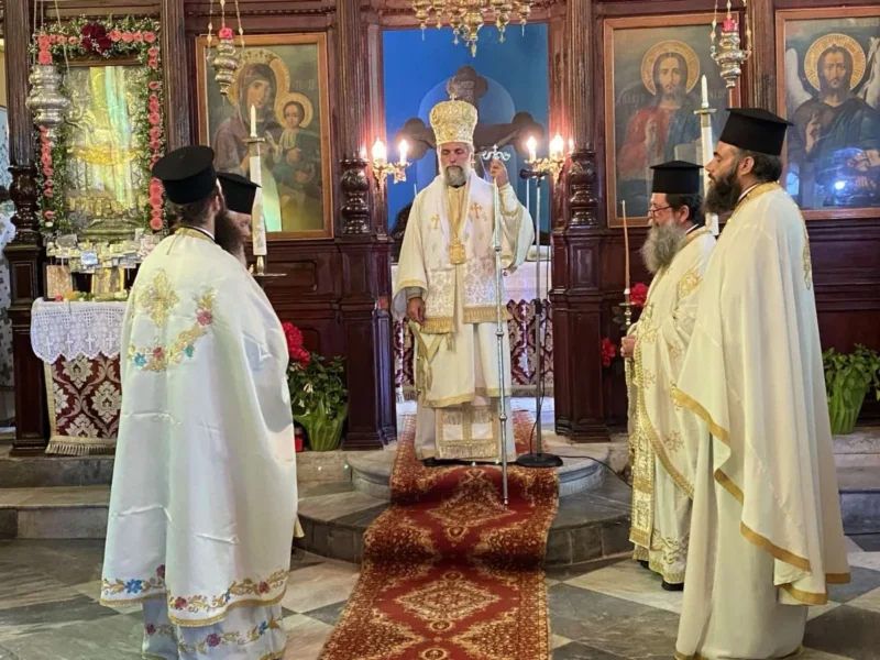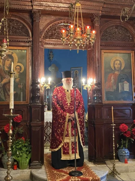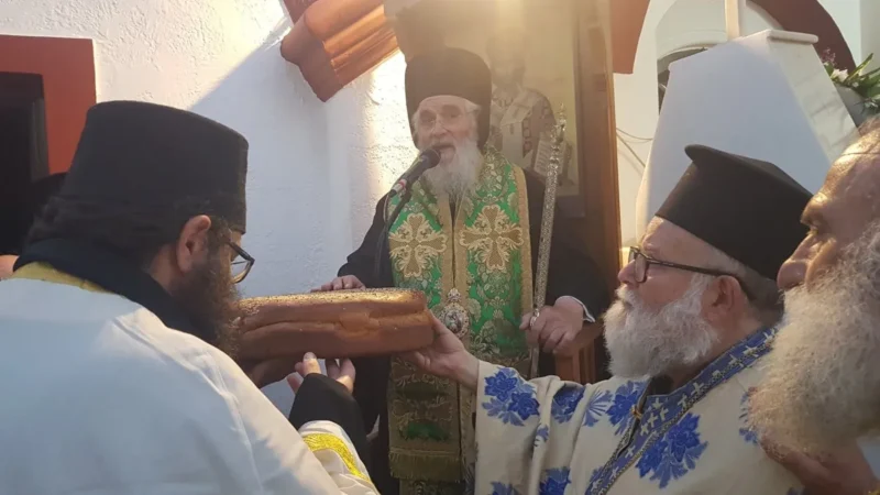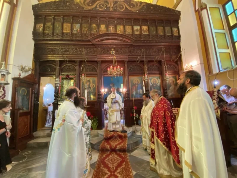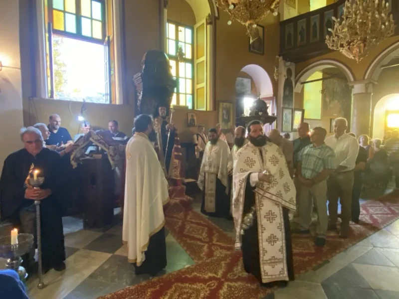 Επί τη σεπτή μνήμη της Αγίας ενδόξου Οσιοπαρθενομάρτυρος Παρασκευής της Αθληφόρου, στον ομώνυμο – παλαιό μητροπολιτικό Ναό της Λέρου, την Αγία Παρασκευή, ετελέσθη με θρησκευτική λαμπρότητα, το απόγευμα της Παρασκευής 25 Ιουλίου 2025, ο Μέγας Πανηγυρικός Αρχιερατικός Εσπερινός μετ’ Αρτοκλασίας, χοροστατούντος του Θεοφιλεστάτου Επισκόπου Στρατονικείας κ. Στεφάνου, συμπαραστατουμένου υπό του Αρχιερατικού Επιτρόπου Λέρου π. Νικοδήμου Φωκά και πλειάδος Ιερέων. Στο ιερό αναλόγιο έψαλλε χορωδία καλλίφωνων ιεροψαλτών υπό την διεύθυνση του Ισίδωρου Λιβανού.