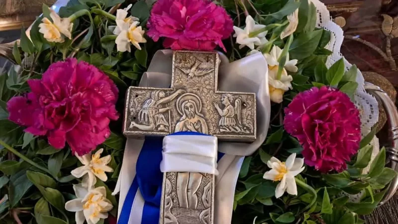 Όπως κάθε χρόνο, την παραμονή των Αγίων Θεοφανίων, ο Σεβασμιώτατος Μητροπολίτης μας κ. Παΐσιος, τηρώντας με ευλάβεια το έθιμο, ετοίμασε μαζί με τους συνεργάτες του την «Αγιαστούρα», το ιδιαίτερο σύμβολο για την ημέρα των Θεοφανίων και τον αγιασμό των υδάτων στην Κάλυμνο. Η εντυπωσιακή «Αγιαστούρα» είναι φτιαγμένη με μεγάλη προσοχή και δεξιοτεχνία από βασιλικό και άλλα αρωματικά λουλούδια, συνθέτοντας ένα πανέμορφο και συμβολικό έργο τέχνης. Ο βασιλικός, σύμβολο ευλογίας και αγνότητας, κυριαρχεί στη σύνθεση, προσδίδοντας ξεχωριστό χρώμα και άρωμα.