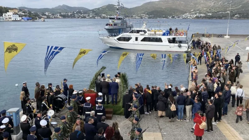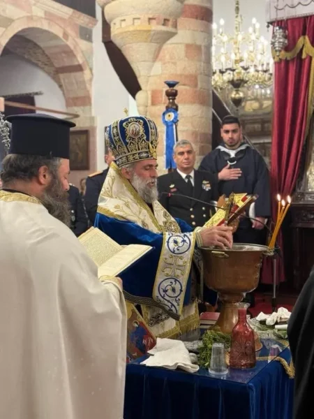 Το πρωί της Τρίτης 6-1-2026, στον Ι. Μητροπολιτικό Ναό «Ευαγγελισμός της Θεοτόκου» Λέρου, ετελέσθη ο Όρθρος των Αγίων Θεοφανίων, η Θεία Λειτουργία του Μεγάλου Βασιλείου και ο Μεγάλος Αγιασμός, χοροστατούντος του Θεοφιλεστάτου Επισκόπου Στρατονικείας κ. Στεφάνου, συμπαραστατουμένου υπό του εφημερίου π. Νικολάου Ταχλιαμπούρη, παρουσία τοπικών πολιτικών και στρατιωτικών Αρχών, καθώς και εκπροσώπων των Ενόπλων Δυνάμεων και των Σωμάτων Ασφαλείας.