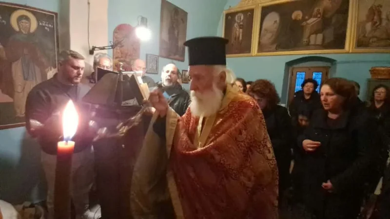 Στην ιερά ακολουθία του Εσπερινού χοροστάτησε ο Σεβασμιώτατος Μητροπολίτης μας κ.κ. Παΐσιος, πλαισιωμένος από τον εφημέριο του Ιερού Ναού Αρχαγγέλου, π. Τίτο Καμπούρη, παρουσία αρκετών πιστών που προσήλθαν με ευλάβεια για να τιμήσουν τη μνήμη του Αγίου Αντωνίου.