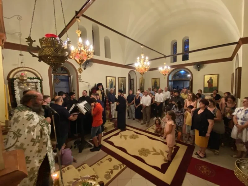Τo εσπέρας του Σαββάτου 26 Ιουλίου 2025, ετελέσθη Μέγας Πανηγυρικός Αρχιερατικός Εσπερινός μετ’ Αρτοκλασίας, στον οποίο χοροστάτησε ο Θεοφιλέστατος Επίσκοπος Στρατονικείας κ. Στέφανος, συμπαραστατούμενος υπό του Αρχιερατικού Επιτρόπου εν Λέρω πρωτ. Νικοδήμου Φωκά και πλειάδος ιερέων της νήσου, αλλά και παρεπιδημούντων ιερέων. Κατά τον Εσπερινό ετελέσθη η αρτοκλασία, μετά το πέρας της οποίας ο Θεοφιλέστατος κήρυξε τον θείο λόγο. Στο ιερό αναλόγιο έψαλλε πολυμελής χορωδία καλλίφωνων ιεροψαλτών.