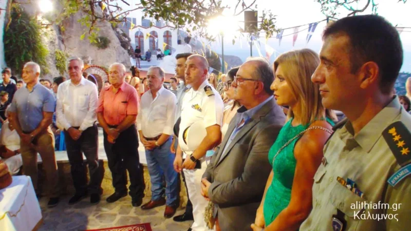 Κατά τον Εσπερινό παρευρέθησαν ο βουλευτής Δωδεκανήσου της ΝΔ Βασίλης Υψηλάντης, ο Έπαρχος ΠΕ Καλύμνου Μανώλης Μουσελλής, ο Δήμαρχος Καλυμνίων Ιωάννης Μαστροκούκος, ο πρώην Δήμαρχος Ιωάννης Γαλουζής, ο Πρόεδρος του ΔΣ Δημήτριος Μαραγκός, ο Αντιδήμαρχος Ιωάννης Θεοφιλίδης, ο Αντιπρόεδρος του ΔΣ Κρις Αλαχούζος, ο Διοικητής του 5/42 ΣΕ Κωνσταντίνος Τσίρος, ο Λιμενάρχης Καλύμνου Αντιπλοίαρχος ΛΣ Θεόφιλος Τσαγκάρης, εκπρόσωπος του Διοικητή του ΑΤ Καλύμνου, η πρώην Διοικήτρια του νοσοκομείου Καλύμνου Κατερίνα Εμμανουήλ. Η προσέλευση των προσκυνητών ήταν εντυπωσιακά μεγάλη, όπως άλλωστε κάθε χρόνο, με την παρουσία Καλυμνίων απανταχού της γης, αλλά και πλήθος πιστών από τα Δωδεκάνησα και όλη την Ελλάδα.