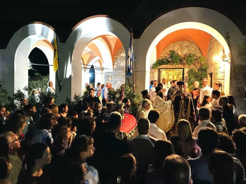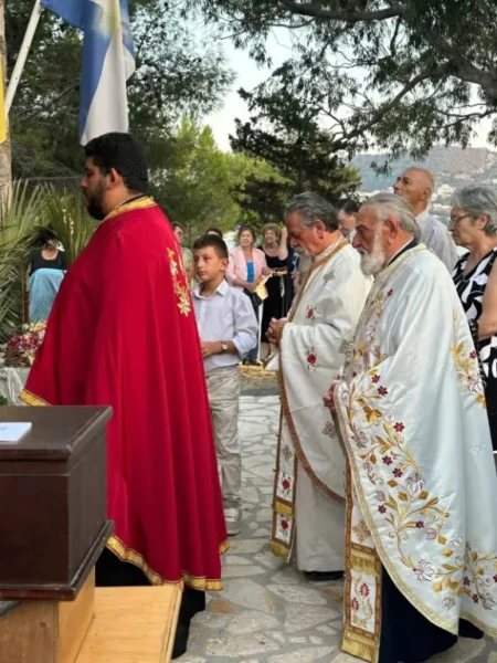 Τον Εσπερινό τέλεσε ο Θεοφιλέστατος Επίσκοπος Στρατονικείας κ. Στέφανος, πλαισιούμενος υπό των Ιερέων π. Νικοδήμου Φωκά, Αρχιερατικού Επιτρόπου Λέρου, π. Νικολάου Ταχλιαμπούρη, π. Ιωάννου Ταχλιαμπούρη, π. Παϊσίου Αγγελάκη, και π. Μιχαήλ Χατζηδάκη. Ο Θεοφιλέστατος στο κατανυκτικό κήρυγμά του, ευχήθηκε στον πιστό λαό κάθε ευλογία από τον Πανάγαθο Θεό δια πρεσβειών της Υπεραγίας Θεοτόκου. Στο ιερό αναλόγιο έψαλλε κατανυκτικά πολυμελής χορωδία υπό την διεύθυνση του μουσικολογιωτάτου Ιεροψάλτου Μιχαήλ Καραμουσαδάκη.