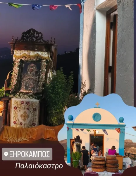 Με την ίδια κατάνυξη εορτάσθηκε η Κοίμηση της Παναγίας μας και σε όλα τα παρεκκλήσια της Λέρου. Ευλογημένες στιγμές από την εορτή της Κοιμήσεως της Θεοτόκου στο ιστορικό εκκλησάκι της Παναγιάς της Γουρλομάτας στο Δρυμώνα, στην Παναγία Παλαιοκάστρου στον Ξηρόκαμπο, στις Παναγιές στα Άλιντα, κ.α.