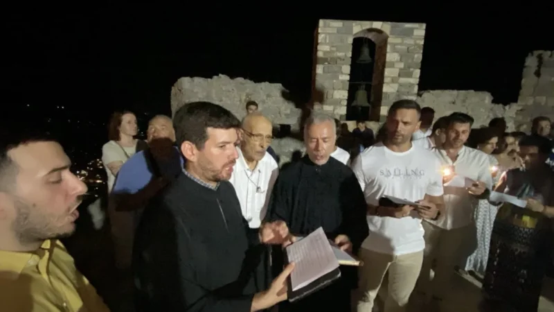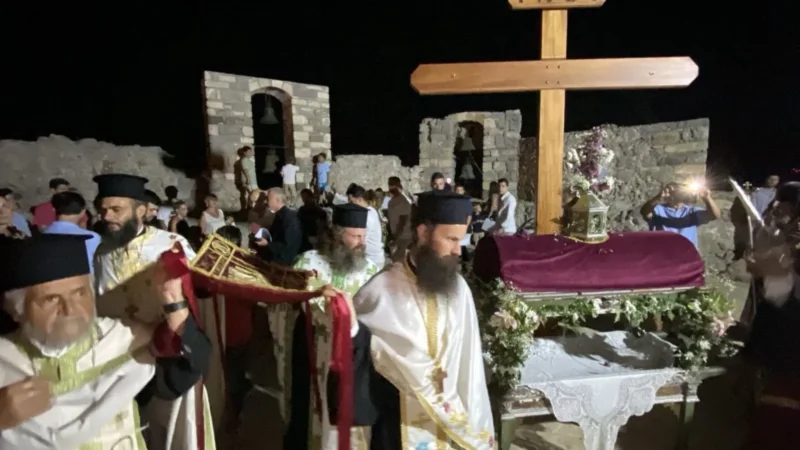 Ακολούθησε ο επιτάφιος και τα εγκώμια της Παναγίας στα «πεντένια» του κάστρου, και εν συνεχεία η Ιερά Παράκληση και οι Χαιρετισμοί στην Κοίμηση της Θεοτόκου.