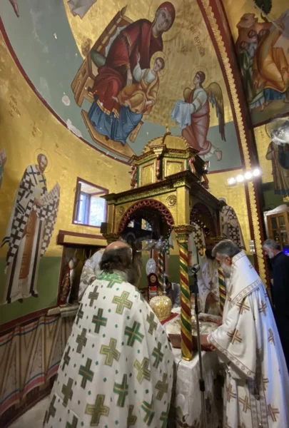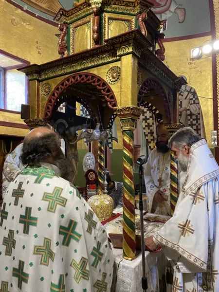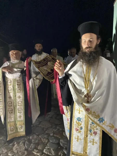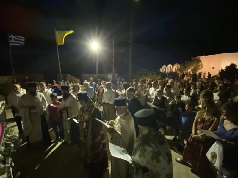 Τον Εσπερινό τέλεσε ο Θεοφιλέστατος Επίσκοπος Στρατονικείας κ. Στέφανος, πλαισιούμενος υπό των Ιερέων π. Νικοδήμου Φωκά, Αρχιερατικού Επιτρόπου Λέρου, π. Νικολάου Ταχλιαμπούρη, π. Ιωάννου Ταχλιαμπούρη, π. Παϊσίου Αγγελάκη, και π. Μιχαήλ Χατζηδάκη. Ο Θεοφιλέστατος στο κατανυκτικό κήρυγμά του, ευχήθηκε στον πιστό λαό κάθε ευλογία από τον Πανάγαθο Θεό δια πρεσβειών της Υπεραγίας Θεοτόκου. Στο ιερό αναλόγιο έψαλλε κατανυκτικά πολυμελής χορωδία υπό την διεύθυνση του μουσικολογιωτάτου Ιεροψάλτου Μιχαήλ Καραμουσαδάκη.