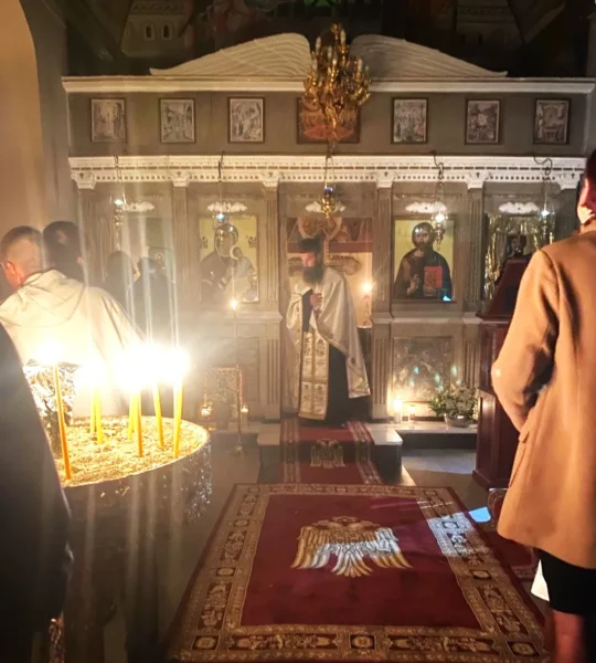 Η Θεία λειτουργία πραγματοποιήθηκε μέσα σε ατμόσφαιρα ευλάβειας , ενώ οι καμπάνες του ναού ήχησαν πανηγυρικά από νωρίς το πρωί, καλώντας τους πιστούς να τιμήσουν τους προστάτες Αγγέλους.