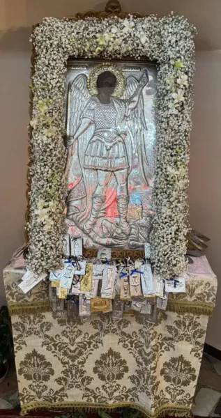Το εσπέρας της Παρασκευής 7/11 τελέστηκε Μέγας Πανηγυρικός Εσπερινός και την πρωΐαν του Σαββάτου 8/11 Θεία Λειτουργία, στο Ιερό Παρεκκλήσιο των Ταξιαρχών στο Λακκί (έναντι νοσοκομείου), υπό του Αιδεσιμωτάτου π. Δαμασκηνού Παλαπουγιούκ και στον κοιμητηριακό Ι. Ναό των Ταξιαρχών στον Πλάτανο.