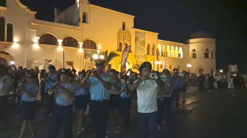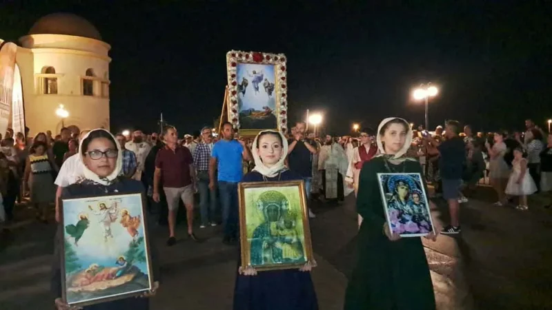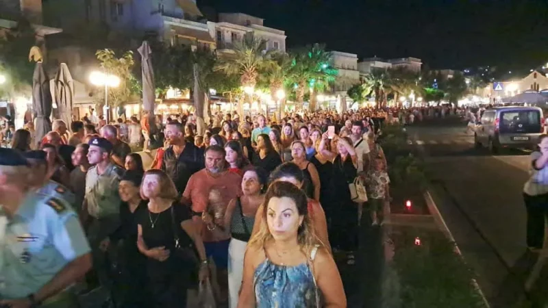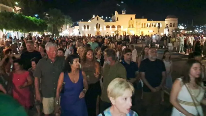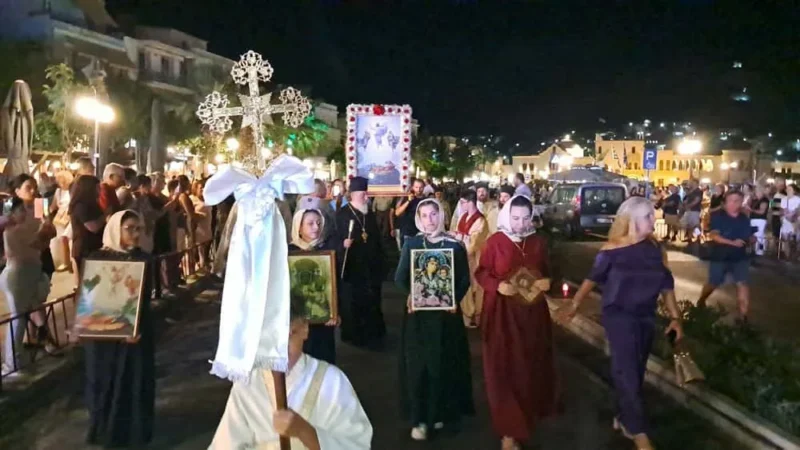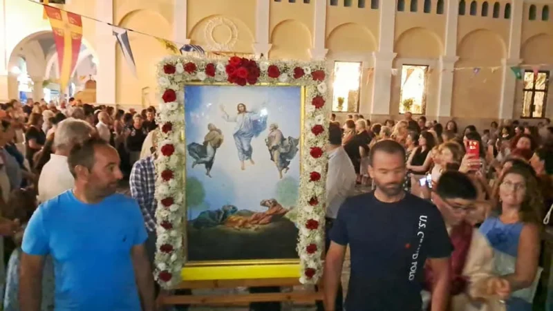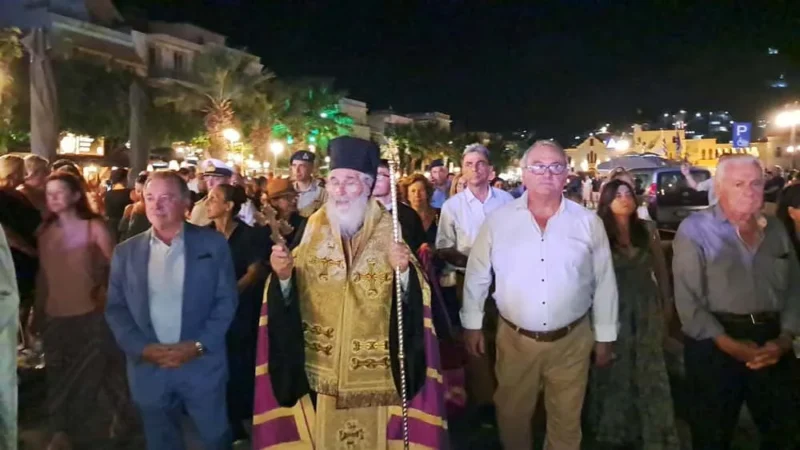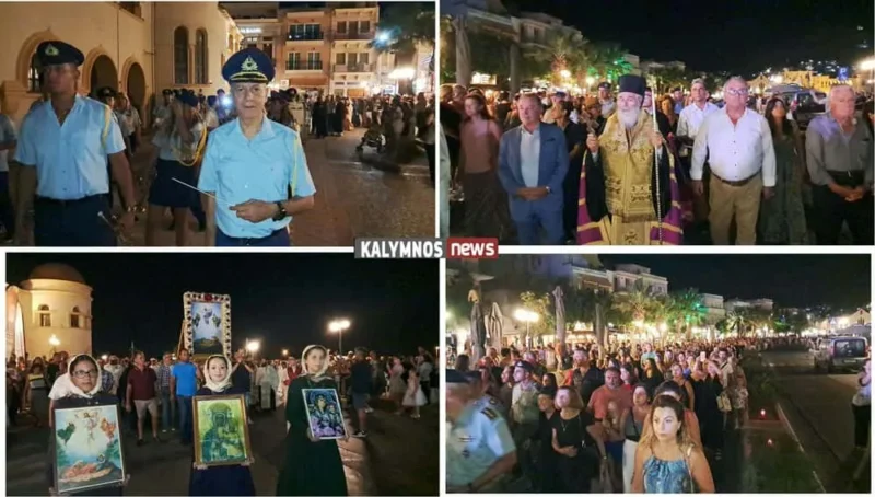 Μετά το πέρας του Εσπερινού, πραγματοποιήθηκε η λιτανεία της Ιεράς Εικόνας της Μεταμορφώσεως του Σωτήρος στην παραλιακή του λιμένος Καλύμνου. Της πομπής προηγείτο η Δημοτική Φιλαρμονική Καλύμνου υπό τη διεύθυνση του μαέστρου Νικολάου Μαμάκα, και ακολουθούσαν ο Ιερός Κλήρος, οι Αρχές της νήσου, εκπρόσωποι φορέων και συλλόγων και πλήθος πιστών.