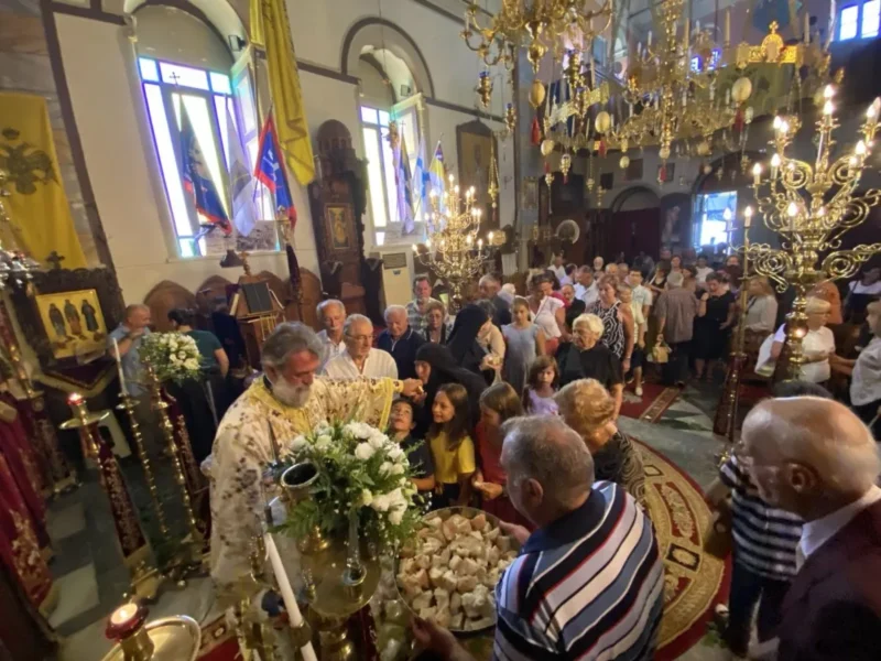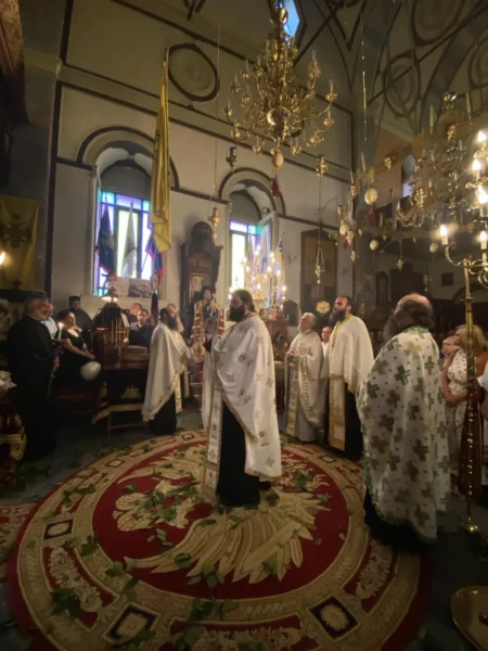 Την Τετάρτη 6 Αυγούστου, ετελέσθη ο Όρθρος και η πανηγυρική Αρχιερατική Θεία Λειτουργία υπό του Θεοφιλεστάτου Επισκόπου Στρατονικείας κ. Στεφάνου, συλλειτουργούντων του π. Νικοδήμου Φωκά, εφημερίου του Ι. Ναού, π. Νικολάου Ταχλιαμπούρη, π. Ιωάννου Ταχλιαμπούρη και π. Παϊσίου Αγγελάκη. Στο ιερό αναλόγιο έψαλλε χορωδία ιεροψαλτών υπό την διεύθυνση του κ. Ισιδώρου Λιβανού.