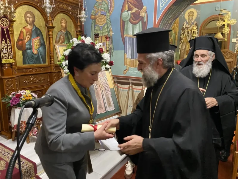 Στα πλαίσια της εκδήλωσης, όπως έχει καθιερωθεί κάθε χρόνο, εκ μέρους της Ιεράς Μητροπόλεως ο Σεβασμιώτατος απένειμε τον Χρυσό Σταυρό της εν Δωδεκανήσω Εκκλησίας του Οικουμενικού Θρόνου στις εκπαιδευτικούς κα Γαρυφαλλιά Ζαβόλα Εμμανουήλ και κα Μαρία Γεωργιάδου, οι οποίες υπηρέτησαν ευόρκως την εκπαίδευση επί 35 συναπτά έτη σε διάφορα σχολεία της Δωδεκανήσου, αλλά και στην υπόλοιπη Ελλάδα. Οι τιμηθείσες εκπαιδευτικοί, φανερά συγκινημένες, ευχαρίστησαν τον Σεβασμιώτατο για την προσγενομένην τιμήν και δέχθηκαν τα συγχαρητήρια των τοπικών αρχών, συναδέλφων τους, αλλά και του ακροατηρίου.