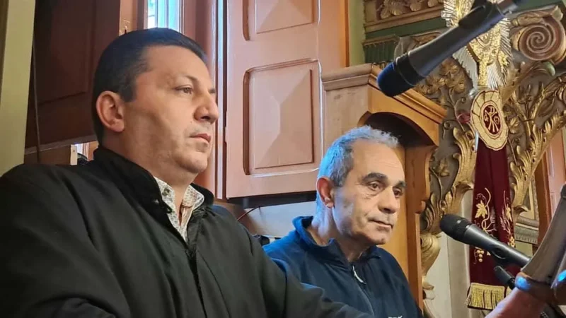 Στο ιερό αναλόγιο έψαλαν οι καλλίφωνοι ιεροψάλτες Ραφαήλ Σμαλιός και Νικόλαος Μονοκάνδηλος, οι οποίοι με τις μελωδικές αποδόσεις τους συνέβαλαν στη δημιουργία μιας ιδιαίτερα κατανυκτικής και πνευματικής ατμόσφαιρας.