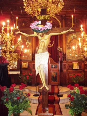 Την Μεγάλη Πέμπτη, τελείται η Ακολουθία των Παθών, διαβάζονται τα δώδεκα Ευαγγέλια, γίνεται η τελετή της Σταύρωσης του Χριστού, και σε όλες τις Ενορίες γίνεται ο στολισμός των Επιταφίων. Η συγκίνηση της λαϊκής ψυχής για το θείο δράμα κορυφώνεται. «Σήμερον κρεμάται επί ξύλου, ο εν ύδασι την γην κρεμάσας…».