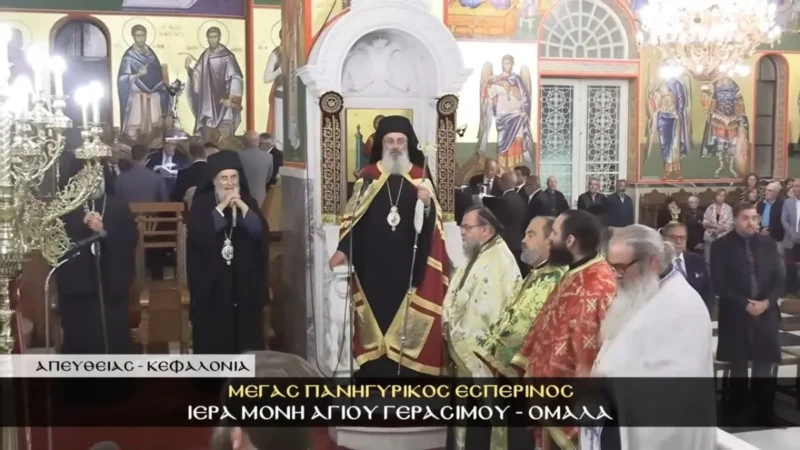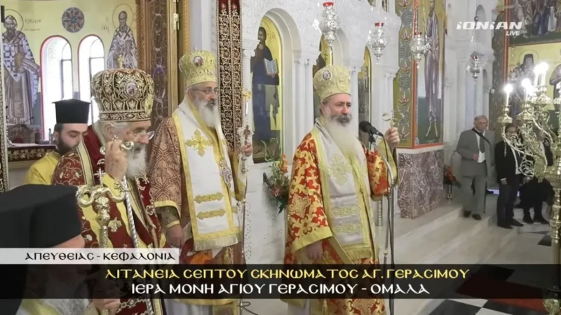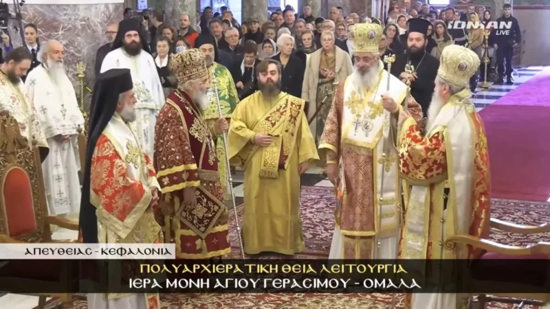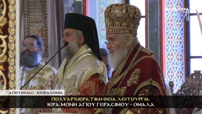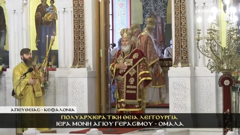 Ο Σεβασμιώτατος Μητροπολίτης μας κ.Παΐσιος, συνοδευόμενος από τον Θεοφιλέστατο Επίσκοπο Στρατονικείας κ. Στέφανο και τον Αρχιερατικό Επίτροπο Καλύμνου π. Αμφιλόχιο Σακαλλέρο, πρωτοπρεσβύτερο του Οικουμενικού Θρόνου, κατόπιν αδείας του Οικουμενικού Πατριαρχείου, μετέβη στην ιδιαίτερη πατρίδα του, το Ληξούρι της Κεφαλληνίας, προκειμένου να συμμετάσχει στους εορτασμούς του Αγίου Γερασίμου.