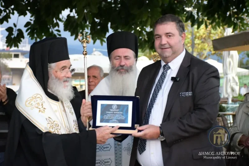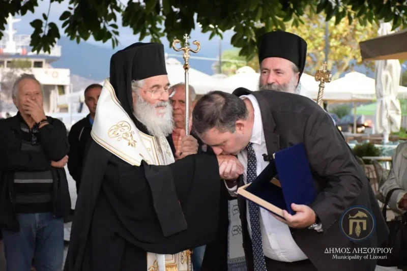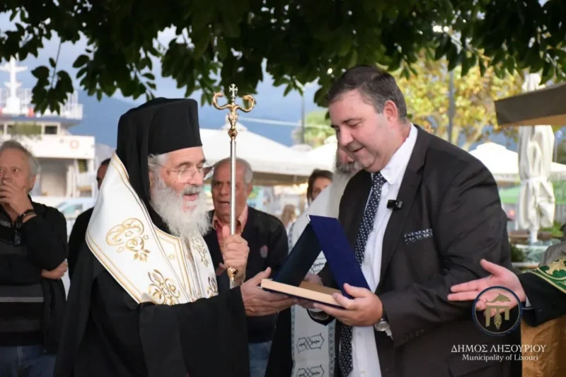 Στην Κεντρική Πλατεία της πόλης, ο Δήμαρχος Ληξουρίου κ. Γεώργιος Κατσιβέλης τίμησε τον Μητροπολίτη Λέρου, Καλύμνου και Αστυπαλαίας κ. Παΐσιο, για την εξηκονταετή προσφορά του στην εκκλησία.