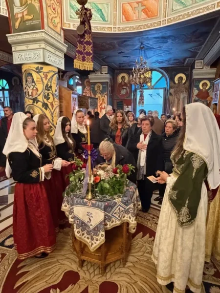 Η σεβαστή Γερόντισσα Μαρκέλλα μετά της ευλογημένης Συνοδείας της, την υποδέχτηκαν με δάκρυα ευχαριστίας και συγκινήσεως, καθώς η Οσία Γαβριηλία το 1969 και το 1970, ως μοναχή Γαβριηλία, είχε φιλοξενηθεί στην Ιερά Μονή Παρθενώνος και η Γερόντισσα Μαρκέλλα, δόκιμη μοναχή τότε, την ενθυμείτο. Εκκλησιάστηκαν και τμήματα μαθητών.